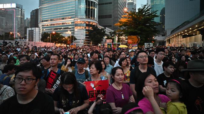 Liputan6.com, Hong Kong - Puluhan ribu penduduk Hong Kong turun ke jalan pada Minggu 28 April, untuk menuntut pemerintah mereka menghentikan rencana memudahkan ekstradisi orang ke sistem peradilan rahasia di China daratan.