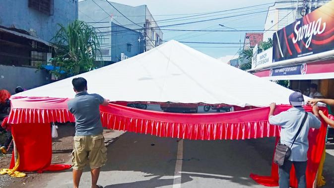 Hendra menyatakan untuk satu tenda ukuran 3X5 dibanderol Rp 350 ribu per hari. Termasuk kursi plastik yang dibungkus kain Rp 3000 per unit.