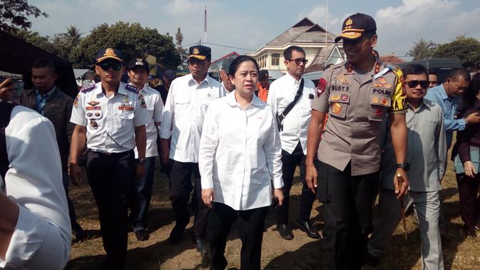 Menggunakan tiga helikopter Basarnas, rombongan Menteri Puan didampingi Menteri PUPR Basuki Hadimuljono, Menteri Perhubungan Budi Karya Sumadi, Menteri Kesehatan Nila F Moeloek, Kepala Basarnas Marsekal Madya (TNI) Bagus Puruhito, dan Kapolda Jabar Irjen Pol Rudy Sufahriady.