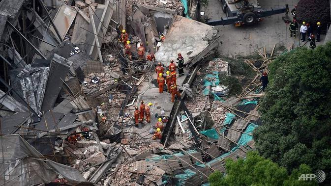 Liputan6.com, Shanghai - Atap gedung sebuah dealer mobil runtuh di Shanghai pada Kamis, 16 Mei 2019. Akibat peristiwa itu, sembilan pekerja konstruksi terperangkap dalam reruntuhan bangunan.