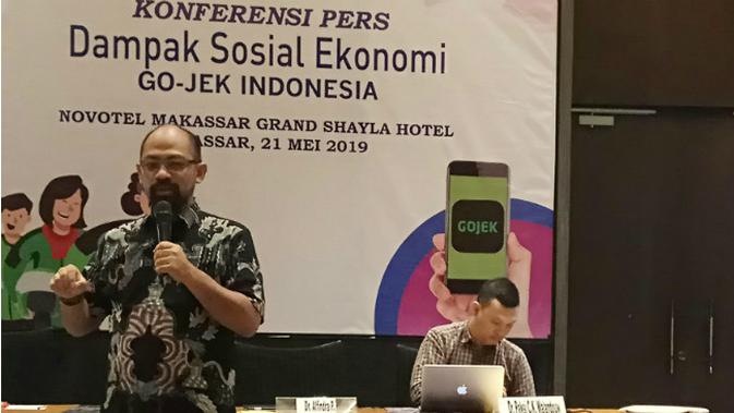 Liputan6.com, Makassar - Wakil Kepala Lembaga Demografi Fakultas Ekonomi dan Bisnis (LD FEB) Universitas Indonesia, Paksi CK Walandouw membeberkan kontribusi mitra Gojek untuk perekonomian nasional pada tahun 2018 mencapai Rp44,2 triliun.
