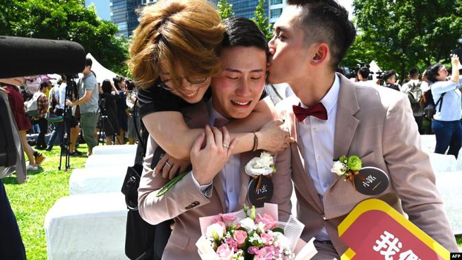 “Karena sekarang pernikahan sesame jenis sudah diakui secara hukum, saya pikir orang tua saya akhirnya akan berpikir ini nyata dan berhenti membujuk saya untuk menikah (dengan seorang pria),” kata Huang.