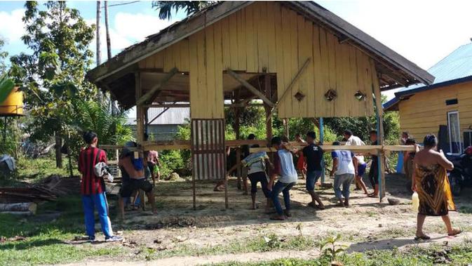 Setelah itu, semua perabotan di dalam rumah dikeluarkan. Bahkan, beberapa bagian rumah yang dianggap besar, akan dibuka sementara sebelum rumah dipikul warga.