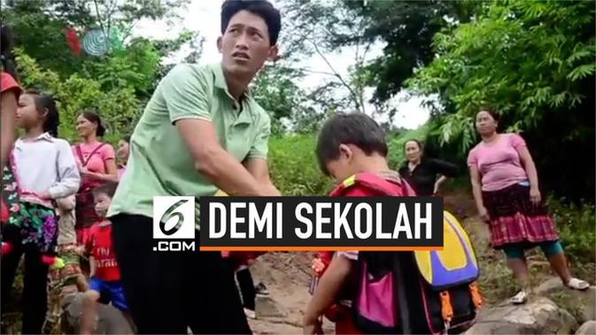 Liputan6.com, Jakarta Akibat hujan terus melanda salah satu propinsi di Vietnam, air sungai mulai menguap. Sehingga, hal ini mengakibatkan sejumlah anak rela masuk kantong plastik untuk menyebrangi sungai.