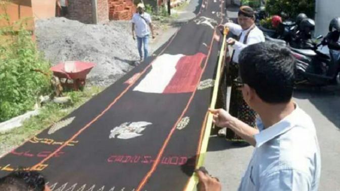Kain tenun yang dibentangkan tersebut merupakan karya Ibrahim Bire Logo, warga Sabu Raijua, yang merupakan pemegang rekor Muri sebagai kain tenun terpanjang.