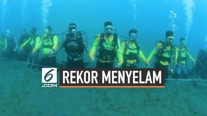 Liputan6.com, Jakarta 578 penyelam yang mengikuti pelaksanan pemecahan rekor dunia berhasil memecahkan rangkaian penyelam terpanjang di bawah air yang di laksanakan di Pantai Manado, tepatnya di Kawasan Mega Mas.