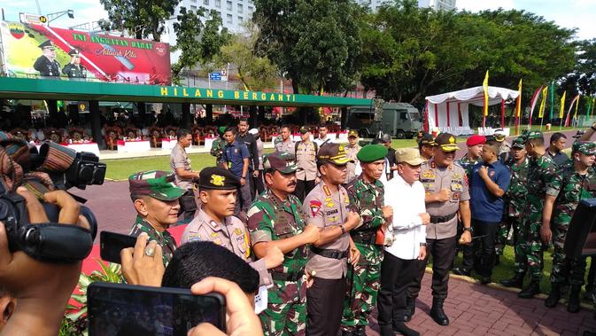 Liputan6.com, Medan - Panglima TNI Marsekal Hadi Tjahjanto dan Kapolri Jenderal Idham Azis pimpin langsung apel gelar pasukan untuk pengamanan Natal 2019 dan Tahun Baru 2020. Apel gelar pasukan dilaksanakan di Lapangan Benteng Medan, Jalan Pengadilan, Kota Medan.