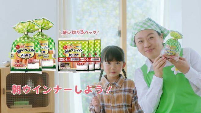 伊藤ハムは3月20日から29日まで、朝食でも食べやすいマイルドな味わいが特徴の「朝のフレッシュ あらびきポークウインナー」の新TV-CM、「朝ウインナーロケット」篇(15秒)と「レッツ試食」篇(15秒)を全国で放映する。新CMでは「朝のフレッシュ」シリーズのイメージキャラクターであるタレントのいとうあさこさんを起用。いとうさんがウインナーロケットに乗って颯爽と登場して、ウインナーが大好きな子どもたちとアドリブで掛け合いを行うバージョンもあり、朝食に「朝のフレッシュ ポークウインナー」を食べてフレッシュな気持ちで元気な朝をスタートしてほしいという思いを届ける。また、CMソングには「朝のフレッシュ」シリーズのCMと同じ「夏の扉」を使い、“朝のフレッシュ”らしさを表現している。