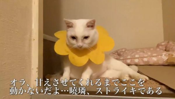 我が家の猫たちは順番で個別で甘えさせるという日課があるのですが、そのターンに納得できない白い珍獣がストライキに入りました。