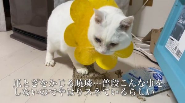 さらには爪とぎをかじったりと、普段はしないことをする拗ねっぷり。