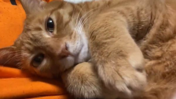 少し撫でてあげるとコロン。「もっと撫でて」とばかりに転がりました。