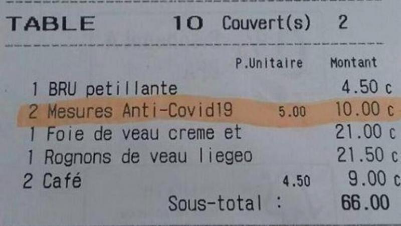 En Belgique, les pertes financières en temps de coronavirus et le coût des contraintes d’hygiènes ont poussé ce restaurateur à facturer les « mesures anti-Covid19 » durant « 10 jours ». Lire l’article